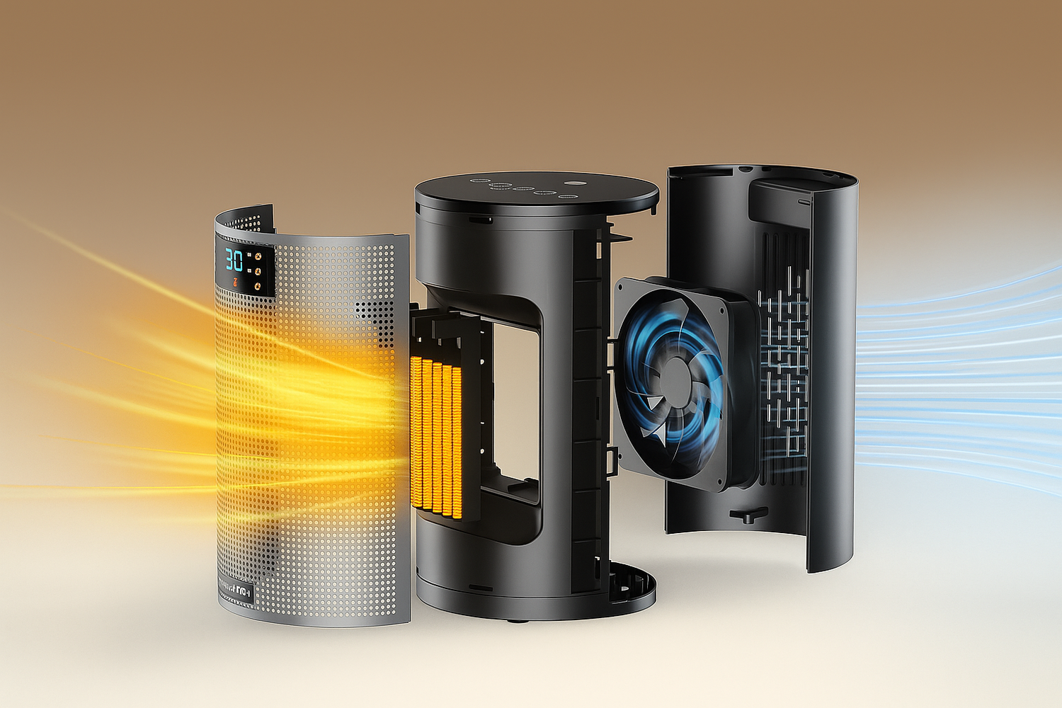 De geavanceerde 1500W PTC-keramische technologie in combinatie met een stille, krachtige ventilator zorgt dat je kamer binnen enkele seconden aangenaam warm is.